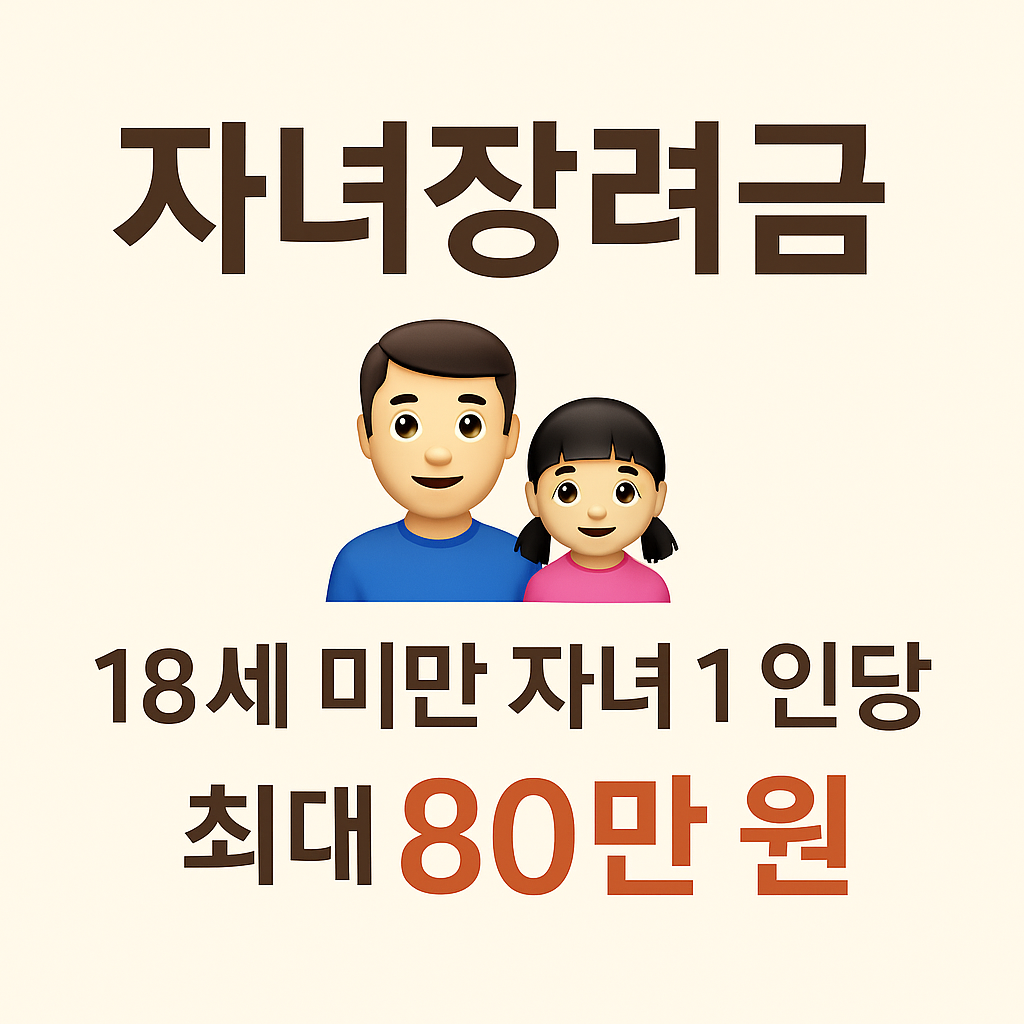 자녀장려금은 저소득 근로자 또는 사업자 중, 18세 미만의 부양 자녀가 있는 경우 연 1회 현금으로 지원해주는 제도입니다. 소득과 재산 요건을 충족하면 자녀 1인당 최대 80만 원까지 받을 수 있습니다.