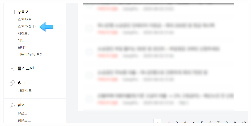 3. 블로그 관리자 접속 → 꾸미기 > 스킨 편집