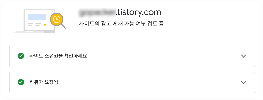 - 애드센스 사이트 관리 메뉴에서 현재 URL 등록 여부 확인