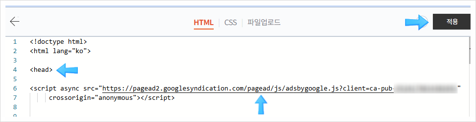 💡 팁: 전체 페이지에 동일하게 적용하려면 스킨의 공용 head 영역에 넣는 것이 가장 안전합니다.